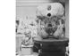Henry Moore in his maquette studio with the plaster "Maquette for Atom Piece" and his elephant skull, 1970. Photo: Errol Jackson.