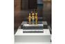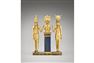Triad of Osorkon II, ca. 874?850 BCE. Glass, Metal, Gold, Stone, Lapis Lazuli. Musée du Louvre, Paris (E 6204) Photo by Mathieu Rabeau © Musée du Louvre, Dist. RMN-Grand Palais / Art Resource, NY.