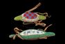 Native American Sioux Beaded Umbilical Amulets Turtles. North America, Western United States, Plains Tribes, likely Lakota (Sioux), ca. early 20th century CE. A pair of rawhide and hand-beaded fetish amulets in the form of turtles, each with leather strip legs and colorful glass beadwork patterns across the shells. Both are stuffed with animal hair and possibly the dried umbilical cord of a newborn. Estimate: $900 - $1,400.