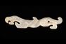Chinese White Jade Archaic Style Tiger Pendant. East Asia, China, ca. mid-20th century CE. A white jade pendant carved as a sinuous tiger-feline in an archaic style, with curled limbs, a raised spine, and incised scroll motifs that echo early ritual jade forms. Smoothly polished and softly translucent, it includes a small suspension piercing for wearing. Size: 2.2" L x 0.4" W (5.6 cm x 1 cm) Estimate: $1,000 - $1,500.