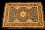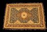 . Central / South Asia, Northwestern India, ca. mid to late 20th century CE. A magnificent zardozi embroidered textile, richly crafted on a base of blue, red, and beige velvet and lined with red satin. This opulent wall hanging showcases elaborate floral and geometric patterns worked in raised copper threads Embellished with a profusion of cabochons, most are glass with a scattering of colored stone cabochons, adding texture and sparkle throughout. Estimate: $500 - $750.