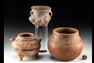 . Native American, Southwestern United States, New Mexico, Acoma Pueblo, ca. mid to late 20th century CE. A handmade pair of pottery moccasins with side button closures, signed "ACOMA" on the heel of the left shoe. Size: 3.75" L x 1.5" W x 2" H (9.5 cm x 3.8 cm x 5.1 cm) Estimate: $500 - $750.