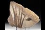 Green River Fossilized Palm Fronds & Fish Panel. North America, Wyoming, Green River Formation, Eocene Period, ca. 53.5 to 48.5 million years ago. A large stone matrix presenting a striking prehistoric aquatic scene, with detailed palm fronds preserved alongside an inlaid Priscacara fish fossil. The fine-grained limestone captures the delicate skeletal structure of the fish and the flowing vegetal forms, evoking the subtropical lake environments that once covered the region during the early Eocene. Estimate: $4,500 - $6,500.