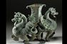 19th C. French Brass Fountain Group - Twin Wyverns. Western Europe, likely France or Northern Italy, Renaissance Revival, ca. 1870 to 1900 CE. A magnificent cast-brass fountain group featuring two back-to-back wyverns coiled around a central flared sleeve. Each fantastical creature displays muscular bodies covered in overlapping scales, ribbed necks arched in serpentine tension, and horned heads with open jaws from which water once issued. Their broad, perforated wings flare outward like shields, recalling the armorial motifs of medieval heraldry, while their tails twist and knot together in a sinuous embrace at the base. Estimate: $2,400 - $3,600.