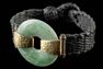 18K Gold & Stone 'Stefano' Bracelet by Consuelo Ulrich. Mexico, ca. 21st century CE. A leather band bracelet centered by a polished greenstone disc framed by two hammered 18K gold mounts. Part of the 'Stefano' line by Consuelo Ulrich, daughter of Alberto Ulrich who assumed leadership of the Spratling enterprise after William Spratling's death. Estimate: $1,600 - $2,500.