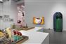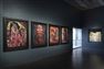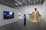 Pauline Minmila Wangin, Pitjantjatjara people, Betty Tjulpukuna Campbell, Pitjantjatjara people, and Emma Singer, Pitjantjatjara people, in Mimili, South Australia, 2022 with their work Kapi (Water) 2022 © the artists / Mimili Maku Arts / APY Art Centre Collective, image courtesy Mimili Maku Arts and APY Art Centre Collective, photo: Rohan Thomson.