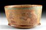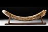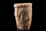 . Native American, Mississippian culture, ca. 1000 to 1500 CE. A compelling fusion of human likeness and celestial symbolism, this sandstone effigy pipe presents a solemn face marked by the unmistakable signs of the falcon - a creature of the upper world and a bearer of power. Estimate: $1,400 - $2,100.