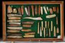 . Native American, Midwestern to Southeastern United States, Archaic to Woodlands era, ca. 8000 BCE to 1800s CE. A collection of bone and antler tools representing assorted find sites, presented in a rectangular wood and glass display case lined with green felt. Estimate: $1,400 - $2,100.