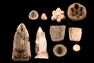 . Central Asia, Pakistan, Afghanistan, Northern India, Gandhara, ca. 3rd to 7th century CE. A set of 5 hand-built pottery molds used for creating intricate relief artworks, typically for religious paneling. Included are molds to make a gathering of fruits or nuts; a set of coiling serpents; an elaborate winged horse, perhaps a pegasus; a minimalist hemisphere, perhaps a ball of butter; and a standing depiction of a male deity. Estimate $500-$750.