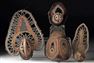 . Oceania, Papua New Guinea, Abelam people, ca. mid to late 20th century CE. A collection of four miniature woven yam masks, each hand-crafted from natural basketry fibers and decorated with pigments in red, white, ochre, and black. Estimate $1,400-$2,100.