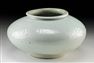 . East Asia, Korea, Joseon Dynasty, ca. 18th to 19th century CE. A luminous porcelain jar glazed in soft celadon tones, embodying the restrained elegance characteristic of late Joseon ceramics. The vessel is fashioned with a broad, rounded body that gently swells at the shoulders before tapering to a short, recessed foot. Its wide, upright mouth rim is neatly everted, lending balance to the jar's otherwise understated form. Estimate $2,000-$3,000.