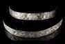 . Central Asia, Tibet, ca. 19th to early 20th century CE. A pair of bronze dorje (vajra), ritual implements used in Tibetan Buddhist worship and other Vajrayana traditions. The larger example is cast with a symmetrical ribbed shaft, its bulbous central node flanked by lotus-petal motifs, and terminating in the characteristic prongs that meet at a central axis. Estimate $1,500-$2,250.