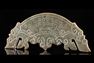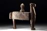 19th C. Indian Himachal Wood Noodle Maker - Ram Form. South Asia, north India, Himachal Pradesh, ca. late 19th to 20th century CE. A rare and whimsical hand-carved wooden noodle maker in the form of a standing ram. The figure rests sturdily on four legs, its head carved to serve as a handle for grip, while the forelegs and hindlegs form the base supports. Estimate $1,400-$2,100.