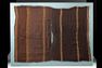 Peruvian Quechua Wool Poncho w/ Patterned Registers. South America, Peru, Quechua culture, 19th to early 20th century CE. A woven wool poncho composed of two dark brown rectangular panels joined along the center seam, with a vertical slit left open for the head. This traditional Andean garment is ornamented with narrow registers of light brown to beige-toned geometric motifs, in discontinuous warp and weft tapestry technique. Estimate $1,300-$1,950.