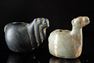 2 Inca Stone Llama Canopa Vessels for Ritual Offerings. South America, Peru / Bolivia, Inca to Spanish Colonial Period, ca. 15th to early 20th century CE. A pair of canopa vessels carved from stones in the form of llamas or alpacas with a rounded body and small drilled eyes, its back hollowed with a circular cavity for ritual deposits. The simple yet evocative form reflects the Andean reverence for camelids as essential providers of wool, transport, and sacrificial power. Estimate $1,300-$1,950.